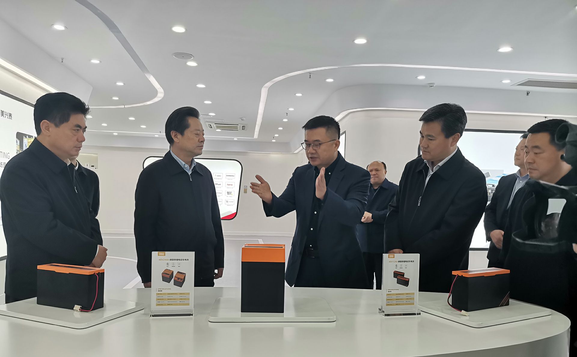 在董事长杨昌军的带领下,州委书记虢正贵一行参观了米乐官方端网站登录入口-米乐(中国)产品展示厅以及泰和美新能源电芯自动化生产线,详细了解了泰和美电动车电池产品市场规模及市场前景。